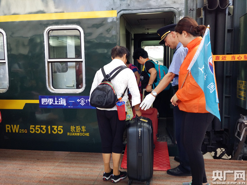 旅客們拖著行李踏進(jìn)“四季上海-喀什號(hào)”援疆旅游專(zhuān)列 央廣網(wǎng)記者林馥榆 攝