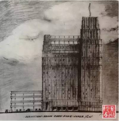 靜安寺路跑馬廳一帶寸土寸金,國際飯店的地皮僅有1176平方米。鄔達(dá)克幾易草圖,最終定稿為一幢美國現(xiàn)代派風(fēng)格的摩天大廈,地上22層,地下2層,總高度為83.8米。