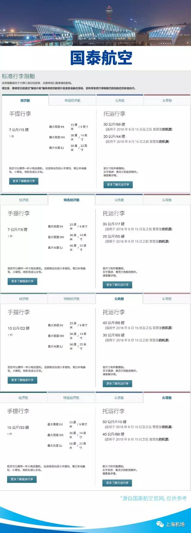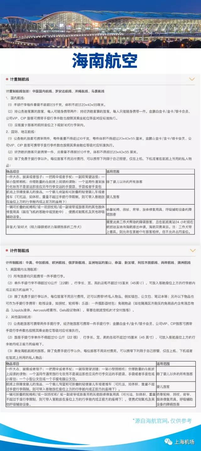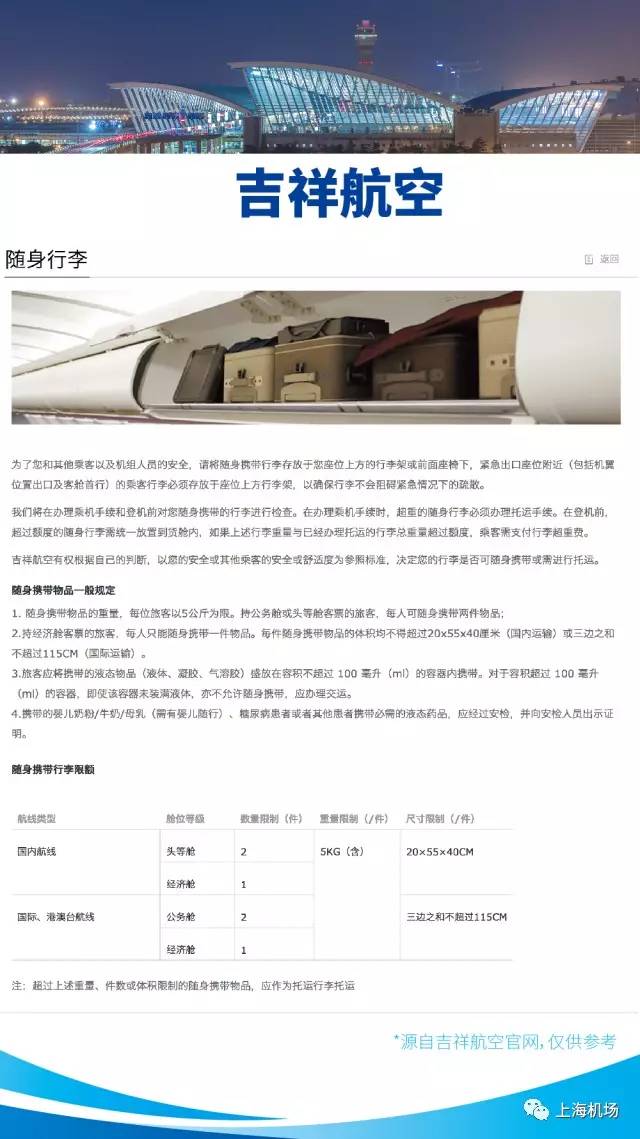 — 部分航空公司關(guān)于手提行李的規(guī)定 —