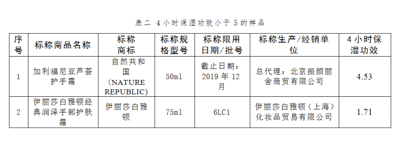 檢測(cè)結(jié)果發(fā)現(xiàn), 以4小時(shí)保濕功效為例,27件樣品最高的為25.22,最低的為1.71,保濕效果差異明顯。其中4件樣品的數(shù)值在20以上,保濕效果上佳(見表一);10件樣品在15至20之間;9件樣品在10至15之間;2件樣品在5至10之間;2件樣品在5下,保濕效果一般(見表二)。