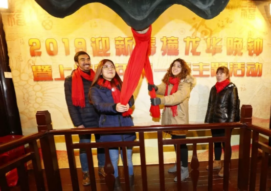 去龍華古寺,撞鐘、祈福、吃越年面。