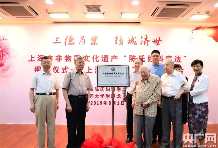 央廣網(wǎng)上海8月3日消息(記者楊靜 通訊員陳豪)上海市非物質(zhì)文化遺產(chǎn)“陳氏婦科療法”揭牌儀式暨海派陳氏婦科學(xué)術(shù)交流會日前在上海中醫(yī)藥大學(xué)附屬龍華醫(yī)院召開,陳氏婦科第四代代表性傳承人陳惠林教授、王大增教授、各非遺項目代表性傳承人施杞教授和上海中醫(yī)藥大學(xué)副校長胡鴻毅副校長共同為第六批上海市非物質(zhì)文化遺產(chǎn)擴展項目“陳氏婦科療法”揭牌。