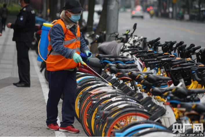 “我背著的加滿消毒水的消毒噴霧器大概在20斤左右,對(duì)于單車(chē)和人易接觸的重點(diǎn)位置,消毒液的噴灑會(huì)持續(xù)至少5秒鐘,每天十幾個(gè)重要的停車(chē)點(diǎn)位跑下來(lái),步行至少2萬(wàn)步。”從春節(jié)開(kāi)始就加入單車(chē)消毒工作行列的一線運(yùn)維人員老袁說(shuō)。