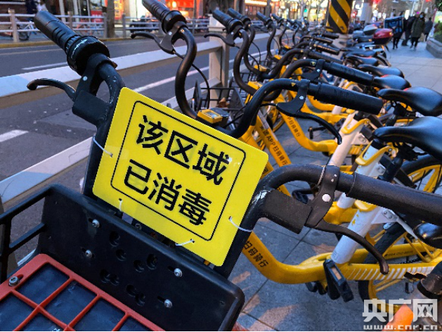 上海街頭的美團(tuán)單車(chē)在已消毒區(qū)域的車(chē)上掛著明顯標(biāo)志(央廣網(wǎng)發(fā) 美團(tuán)單車(chē)供圖)
