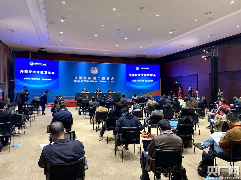 11月5日,商務部外資司在第三屆中國國際進口博覽會上發(fā)布《中國外資統(tǒng)計公報2020》(央廣網(wǎng)記者 唐奇云 攝)