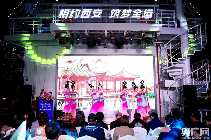晚上七時許,伴著靈動悠揚的仿唐樂舞《綠腰踏鼓》,黃浦江“船長8號”游輪鳴笛啟航。在近2小時的夜游巡航中,來自西安市的西咸新區(qū)、曲江新區(qū)、高新區(qū)等文旅資源區(qū)域代表分別做了精彩分享,向與會嘉賓推出了西安文旅的新熱點、新場景和打卡新地標,展示文化西安、時尚西安、創(chuàng)意西安的活力形象。舞蹈《七夕》至純至美,詩朗誦《熔鑄文明迎全運》慷慨激昂、歌曲《來西安住些日子吧》溫暖親切……