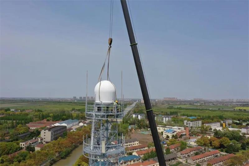 央廣網(wǎng)上海4月19日消息(記者傅聞捷)一頂直徑2.88米的乳白色雷達(dá)天線罩,被緩緩吊裝在高60米的上海崇明區(qū)長(zhǎng)征通信鐵塔頂端,標(biāo)志著上海第五部X波段相控陣天氣雷達(dá)安裝完畢。