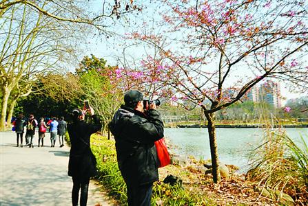寒櫻是上海地區(qū)開花最早且較穩(wěn)定、觀賞效果最佳的早櫻,有上海櫻花季“風(fēng)向標(biāo)”的美譽(yù)!吧虾V参飯@大規(guī)模種植櫻花已有20年,可以說今年這批的花期是最早的!鄙虾V参飯@園藝專家朱繼軍介紹說,早在2月4日,也就是春節(jié)長假過后的第二個工作日,植物園內(nèi)的一棵寒櫻就已開花,比去年提前了兩周。昨天,園內(nèi)的河津櫻也開了近兩成,而去年河津櫻開到這個規(guī)模,起碼等到2月25日。
