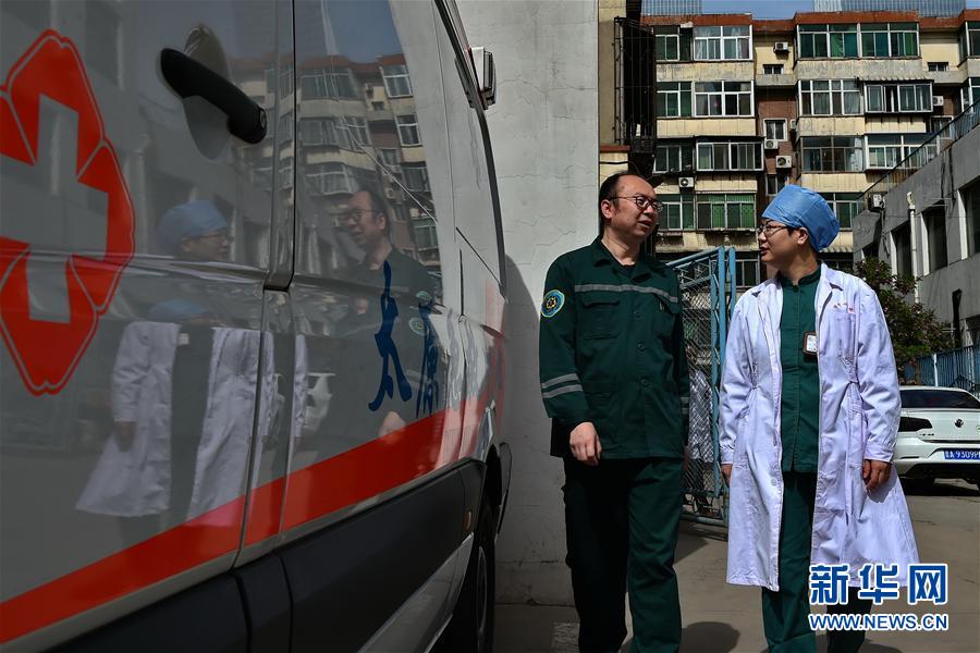 5月11日,許鵬飛在檢查太原市120急救中心急救車(chē)上的設(shè)備。 24小時(shí)候命的急救工作讓夫妻二人很少有時(shí)間顧家,家人的理解和支持讓他們倍感欣慰,同甘共苦的陪伴和救死扶傷的信念是他們堅(jiān)守在護(hù)理崗位的最大動(dòng)力。 -