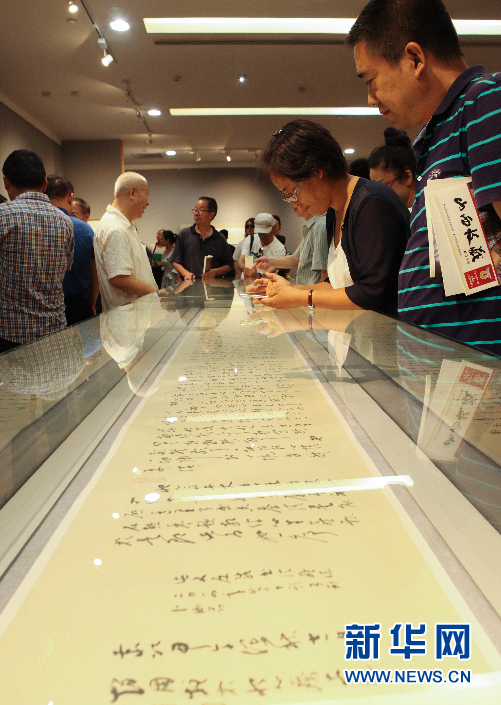 近日,“趙國柱書法匯報展”在太原美術館拉開帷幕。此次展覽共展出趙國柱先生創(chuàng)作的書法作品60余件,展期將持續(xù)到8月13日。從2015年10月起,趙國柱先生先后在北京榮寶齋美術館、上海朵云軒以及杭州西泠印社美術館舉辦了個人書法展。新華網(wǎng)發(fā) (馬平 攝)