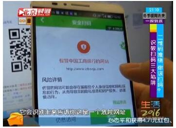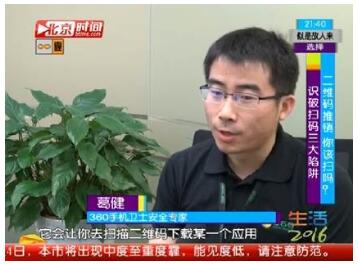 提到二維碼,相信絕大多數(shù)人都不會感到陌生。移動支付、社交軟件溝通、打折優(yōu)惠、電子票券等各種各樣的二維碼,現(xiàn)已覆蓋了我們生活的方方面面。與此同時,二維碼所帶來的風險也日益增多。近日,北京電視臺播出的《生活2016》欄目中,來自360公司的安全專家現(xiàn)場便揭秘了常見的二維碼陷阱和識別技巧。