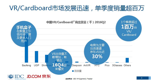 國內(nèi)VR的線上銷售渠道主要是淘寶、京東,同時還有一些自主發(fā)售平臺和第三方眾籌平臺。對于這些渠道的銷量數(shù)據(jù)分析對我們了解出貨量還是存在一定的幫助。