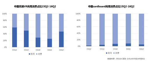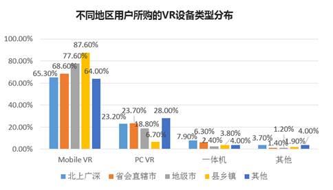 數(shù)據(jù)近8成個人用戶以購買Mobile VR為主,價格區(qū)間在200元左右,大部分為近半年所購。中高端VR設(shè)備大多數(shù)應(yīng)用于商用市場,主要以線下體驗(yàn)店為主[x]。