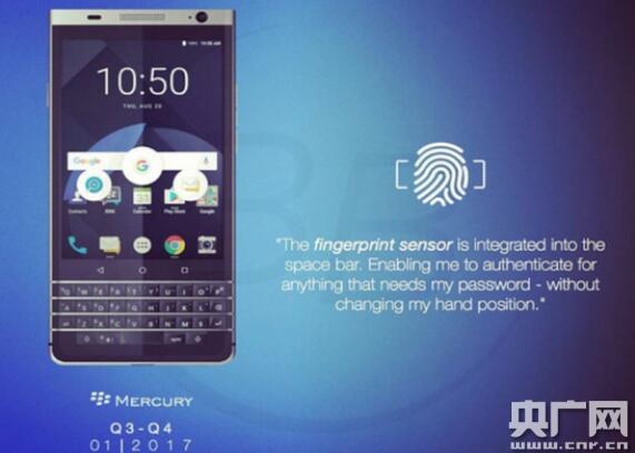黑莓粉絲或許早已聽(tīng)聞將有一款黑莓設(shè)備問(wèn)世,代號(hào)為“Mercury”。今年的CES上我們看到了原型產(chǎn)品,具體配置仍然未知。TCL通信總裁史蒂夫·西斯圖里(Steve Cistulli)展示了正在開(kāi)發(fā)的產(chǎn)品,強(qiáng)調(diào)說(shuō)手機(jī)具備三大特點(diǎn):安裝QWERTY物理鍵盤(pán),它可以作為觸摸墊使用;空格鍵中安裝了指紋傳感器;搭載黑莓粉絲喜歡的操作系統(tǒng)。