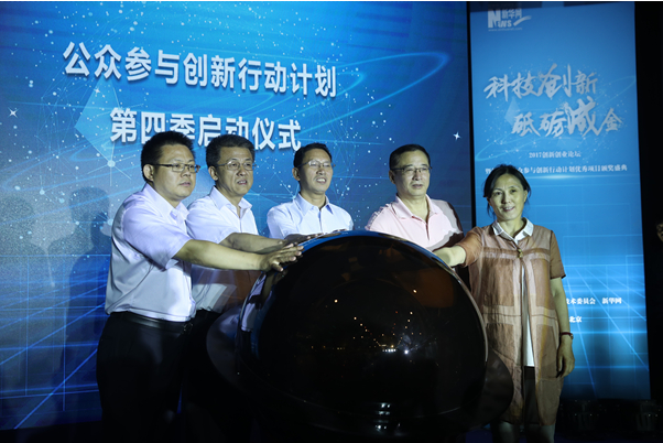 北京市科委副主任伍建民(中)等嘉賓啟動公眾參與創(chuàng)新行動計劃第四季活動 圖來自新華網