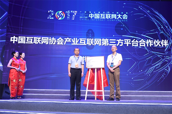 中國互聯(lián)網(wǎng)協(xié)會(huì)秘書長(zhǎng)盧衛(wèi)與樹根互聯(lián)技術(shù)有限公司副總裁李劍為“產(chǎn)業(yè)互聯(lián)網(wǎng)第三方平臺(tái)合作伙伴”揭牌