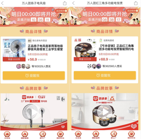 對此,有業(yè)內(nèi)人士指出:“在新增用戶大量涌入之際,(拼多多)推出‘萬人團’活動,意在進一步提升用戶的留存和復(fù)購率。從行業(yè)角度看來,5月是電器類等產(chǎn)品的銷售旺季,活動也契合了市場需求。”