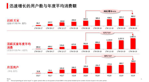 平臺(tái)GMV的增長(zhǎng)主要源自用戶規(guī)模的大幅增長(zhǎng)和平均消費(fèi)額的全面提升。