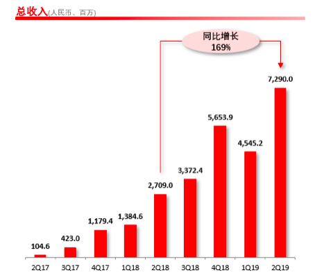 ▲二季度,拼多多實(shí)現(xiàn)營(yíng)收72.90億元,同比增長(zhǎng)169%,環(huán)比增長(zhǎng)60%,高于市場(chǎng)61億元的普遍預(yù)期
