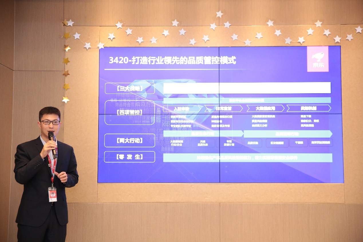 京東零售集團(tuán)平臺(tái)生態(tài)部品質(zhì)提升部負(fù)責(zé)人孫彬現(xiàn)場(chǎng)介紹京東品控模式