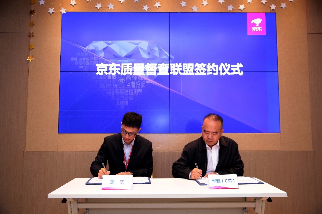 京東零售集團(tuán)平臺(tái)生態(tài)部品質(zhì)提升部負(fù)責(zé)人孫彬與華測(cè)集團(tuán)北方區(qū)總裁陳彥長(zhǎng)