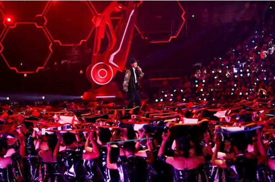 本屆貓晚是首臺(tái)融合了移動(dòng)舞臺(tái)和大型人陣的國(guó)內(nèi)晚會(huì)。47個(gè)六棱柱狀的天貓“盒子”,組合出多種形態(tài),配合LED地屏和500位舞者構(gòu)成的人陣,大大突破了觀眾對(duì)室內(nèi)晚會(huì)的想象。