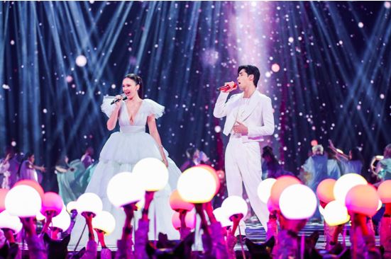 (俄羅斯歌唱家阿依達(dá)與阿云嘎合唱《Halo》。)