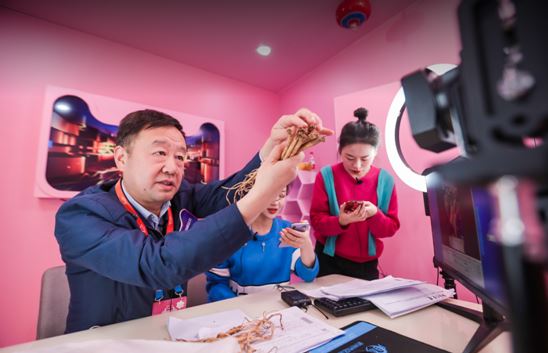 (平順縣副縣長(zhǎng)段開松做客2019貓晚網(wǎng)絡(luò)版,在直播間賣黨參。)
