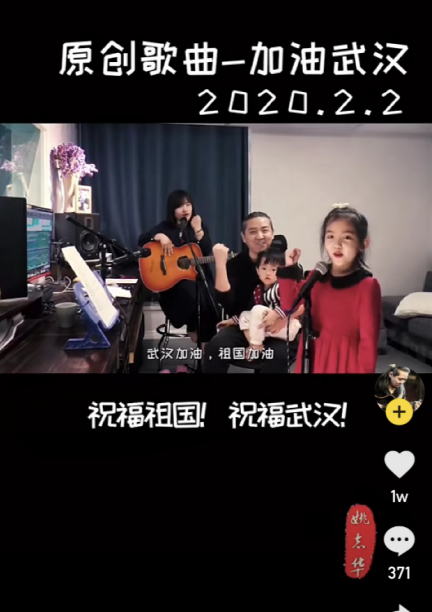 “你是這個(gè)冬天揮之不去的字眼,你有一個(gè)可愛的名字叫武漢。是誰讓你丟失了往日的笑臉,是誰讓你難過了一整個(gè)冬天。我們一起手牽手一起去擁抱明天......”音樂人姚志華(快手號(hào):liuxianwx)一家四口齊上陣,演唱其新創(chuàng)作的歌曲《加油武漢》。歌詞樸實(shí)無華,很多網(wǎng)友留言,為武漢“加油”打氣。