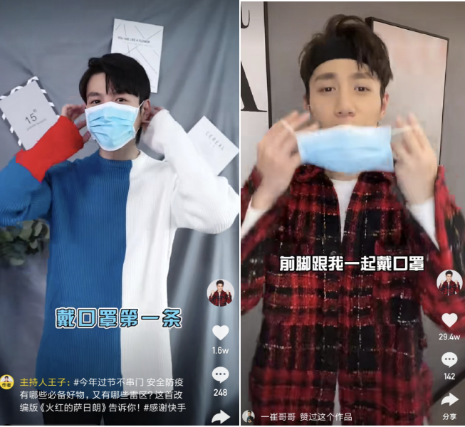 年輕博主則踩著流行節(jié)奏,以年輕的方式宣傳防控知識(shí)!胺佬鹿谇f條,戴口罩第一條,流動(dòng)水洗手雙手要交叉,上班少坐電梯,消毒液噴灑劑,記得開窗通風(fēng)透透氣,板藍(lán)根雙黃連,都不是特效藥,沒必要囤一大堆沒療效,熏白醋,吃辣椒,喝酒殺毒可笑,科學(xué)防控不能靠傳謠”,這是主持人王子(ID:755775536)改編的流行歌曲《火紅的薩日朗》,教給大家科學(xué)防控。