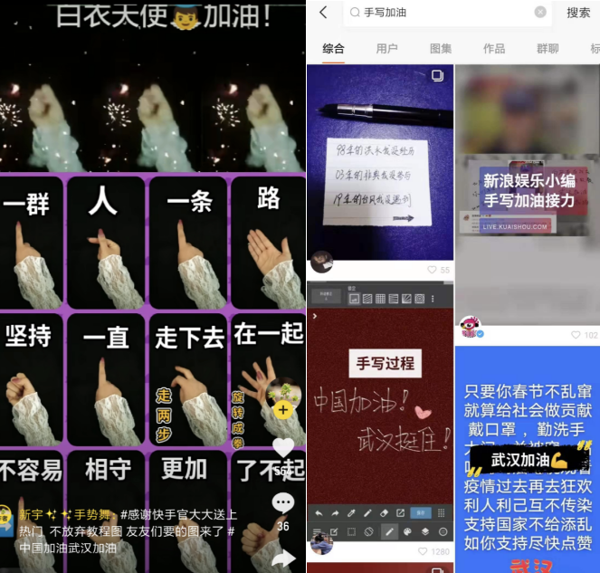 快手上,很多網(wǎng)友通過曲藝唱段、畫漫畫、創(chuàng)作或改編歌曲、寫詩等文藝表達(dá)呼吁大家重視防疫,掌握防疫知識(shí),禮贊堅(jiān)守一線的白衣天使們。