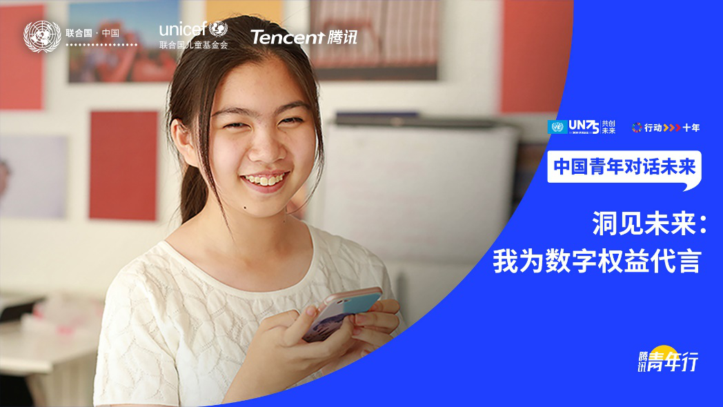 2020年7月12日,來自中國的青年代表通過互聯(lián)網(wǎng)齊聚一堂,參與聯(lián)合國兒童基金會駐華辦事處和騰訊集團(tuán)共同主辦的“洞見未來:我為數(shù)字權(quán)益代言”線上對話活動,分享他們對確保青少年安全上網(wǎng)、健康用網(wǎng)、科技賦能的解決方案。這場對話互動持續(xù)約90分鐘,是聯(lián)合國駐華系統(tǒng)與騰訊為紀(jì)念聯(lián)合國成立75周年而共同開展的“中國青年對話未來”系列活動之一。