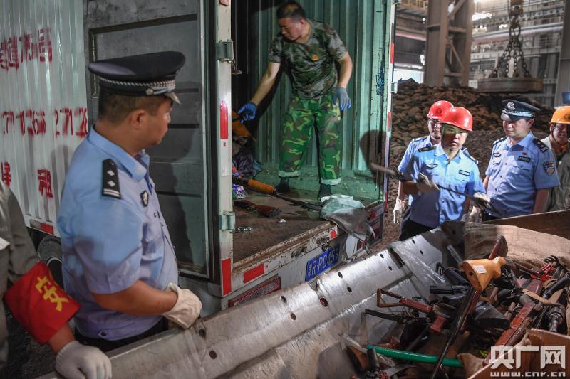 央廣網(wǎng)天津7月5日消息(記者陳慶濱 蘇平 通訊員樊曉慧 志安)7月5日,天津市公安局治安管理總隊組織開展集中銷毀行動,對2017年以來收繳的各類槍支、管制刀具進行集中銷毀。此次活動共銷毀各類槍支804支、仿真槍1841支、管制刀具2697把。