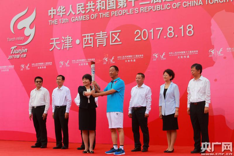 央廣網(wǎng)天津8月18日消息(記者 陳慶濱)8月18日上午9:00,中華人民共和國(guó)第十三屆運(yùn)動(dòng)會(huì)火炬?zhèn)鬟f儀式第十站在西青區(qū)進(jìn)行。隨著西青站第一棒火炬手郭寶印接過(guò)火炬出發(fā),第十三屆全運(yùn)會(huì)火炬?zhèn)鬟f儀式西青站正式開(kāi)始。