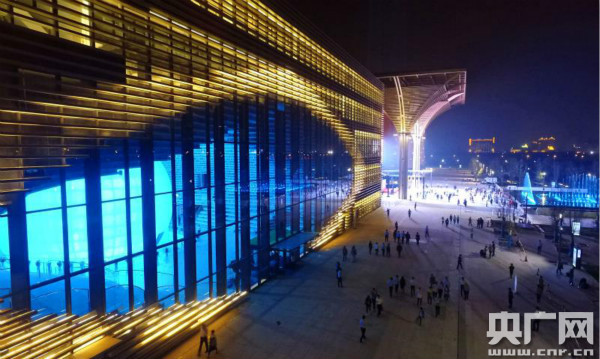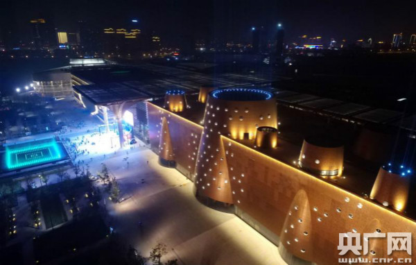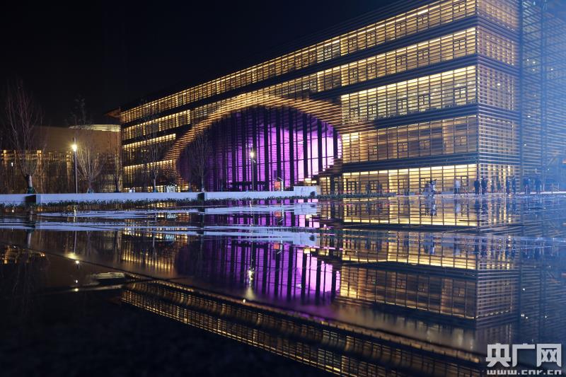 天津濱海新區(qū)文化中心開幕前整體點亮 現(xiàn)場光影璀璨