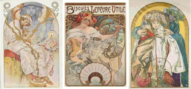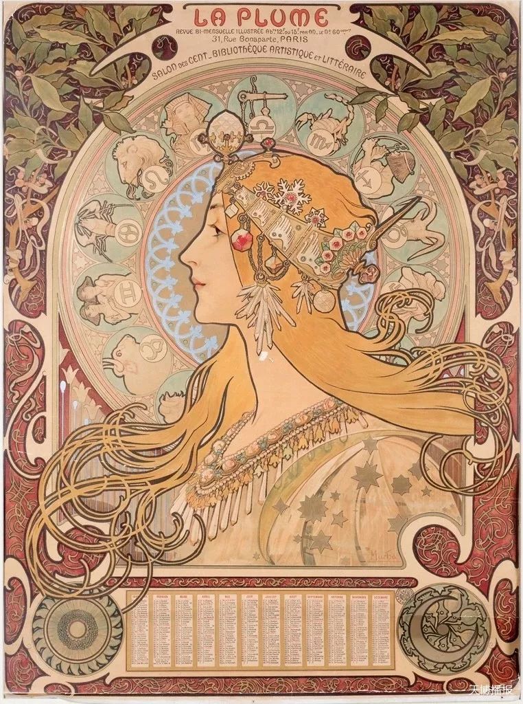 阿爾豐斯·穆夏(Alfons Mucha)是捷克的國(guó)寶級(jí)藝術(shù)家,也是歐洲新藝術(shù)運(yùn)動(dòng)的杰出代表,被《紐約每日新聞》譽(yù)為世界上“最偉大的裝飾藝術(shù)家”。他的創(chuàng)作涉獵廣泛,包括海報(bào)、插畫、裝飾板、工藝品設(shè)計(jì)以及油畫、雕塑等。他的作品既有鮮明的新藝術(shù)運(yùn)動(dòng)特征,又帶有強(qiáng)烈的個(gè)人色彩。早期海報(bào)、裝飾畫等作品以韻律化的裝飾線條、簡(jiǎn)潔的輪廓線和柔和明快的水彩效果為特點(diǎn),所描繪的女性形象甜美婀娜、柔媚動(dòng)人,與人物周圍流暢的植物花紋曲線相輔相成、相得益彰,作品以素描、粉彩和蛋彩為主。晚期作品風(fēng)格開始多樣化,更加自由奔放,晚年更是向巨幅油畫創(chuàng)作轉(zhuǎn)型,將自己和國(guó)家、時(shí)代的命運(yùn)相融合,使作品富有永恒的生命力。