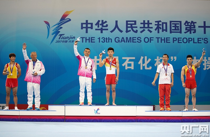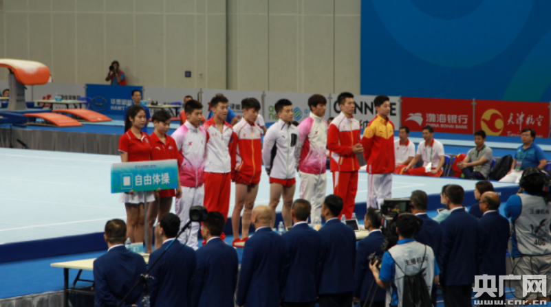 至此比賽已幾無懸念,之后出場的選手再也無法撼動前三名的位置,最終穆濟勒、孫冰、林超攀三人登上冠、亞、季軍的領(lǐng)獎臺,天津隊包攬金銀牌,成為男子自由體操單項的最大贏家。