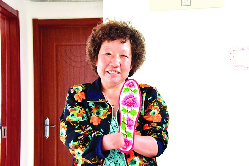 每隔一段時間,趙玉蘭就會坐班車到鄉(xiāng)里的集市上買一些繡鞋墊的原材料,“花開富貴”“喜上眉梢”“出雙入對”“吉祥如意”……這些美好的詞語,都是趙玉蘭對生活的希冀。