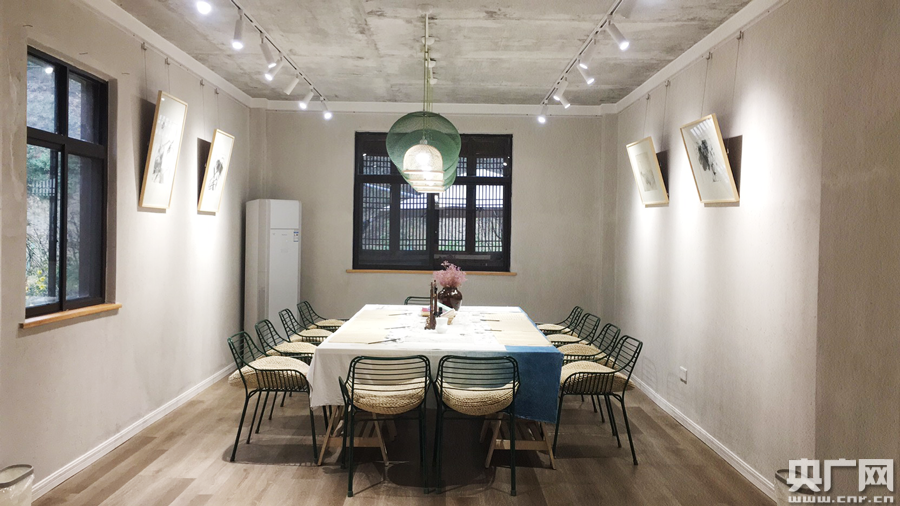 在民宿休閑體驗(yàn)區(qū),王啟迪告訴央廣網(wǎng)記者,游客來到蛙聲十里,不僅可以在棋茶室、書法室體驗(yàn)親子互動(dòng),還可以近距離貼近自然、擁抱自然,迎著晨曦的第一縷陽光,在后院打太極、練瑜伽,完全放松身心!白尯⒆觼淼缴嚼镉幸淮紊鷦(dòng)的體驗(yàn),帶著留戀回去”,在可以手工體驗(yàn)的陶藝坊,王啟迪在一排排各式各樣手工作品展架前邊走邊說!拔覀兊囊粋(gè)理念就是,讓孩子來住一次民宿,就深深愛上大山”。