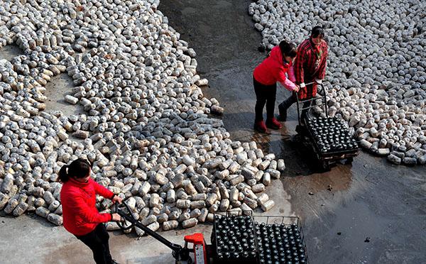 1月6日,當?shù)厝罕娫邛无r(nóng)食用菌專業(yè)合作社生產(chǎn)菌種。