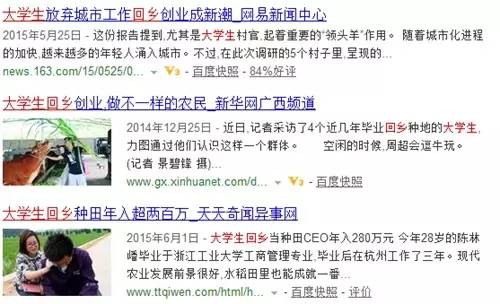 在百度里輸入“大學(xué)生 回鄉(xiāng)”兩個(gè)關(guān)鍵詞,搜索到的內(nèi)容達(dá)到273萬條。