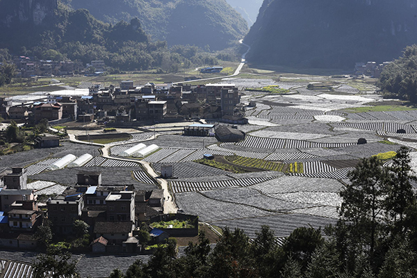 這是2月28日在廣西羅城縣喬善鄉(xiāng)板團村拍攝的田園景色。