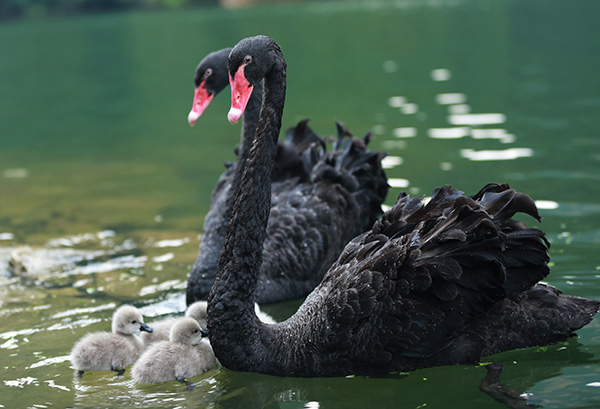 近日,張家界寶峰湖風景區(qū)一對黑天鵝成功育出四只小天鵝,為景區(qū)增添了一個溫馨的場景。