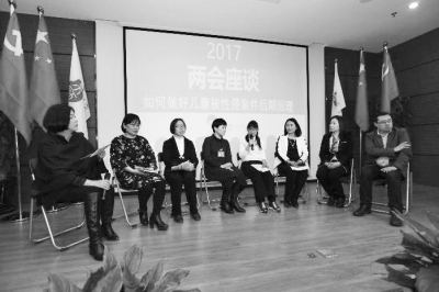 北京市海淀區(qū)人民檢察院副檢察長潘度文說,“公檢法系統(tǒng)需要建立一支專門的熟悉未成年人身心特點的,并且具有較強的保護未成年人意識的辦案隊伍。希望有條件的部門,可以用政府購買服務(wù)方式,辦案過程中聘請心理老師,給孩子和家長進行心理支持!