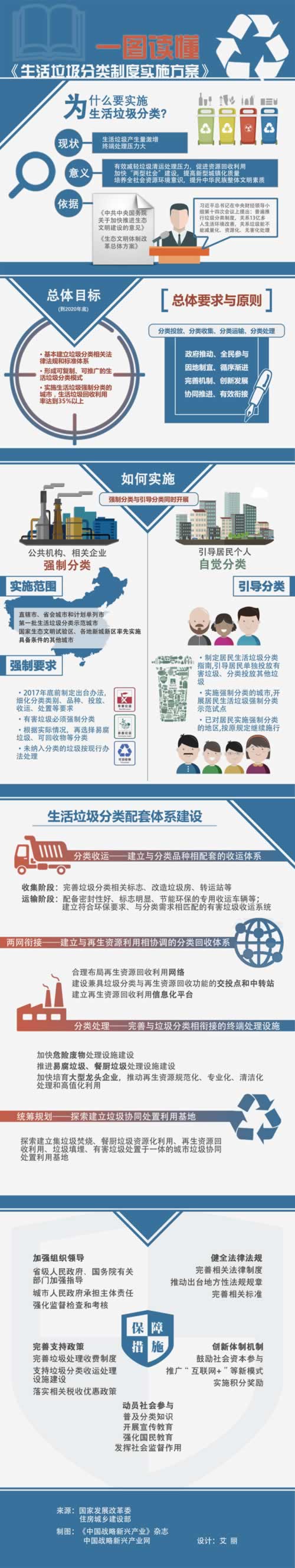 國(guó)務(wù)院辦公廳昨天發(fā)布關(guān)于轉(zhuǎn)發(fā)國(guó)家發(fā)展改革委、住房城鄉(xiāng)建設(shè)部《生活垃圾分類制度實(shí)施方案》的通知!斗桨浮分贫松罾诸愔贫葘(shí)施的目標(biāo)、垃圾分類的類別、激勵(lì)機(jī)制等內(nèi)容,46個(gè)城市將先行實(shí)施生活垃圾強(qiáng)制分類。