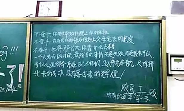 8月25日是河南省實驗中學(xué)開學(xué)第一天,一名農(nóng)民工留在黑板上的寄語,經(jīng)朋友圈各種轉(zhuǎn)發(fā),火了。