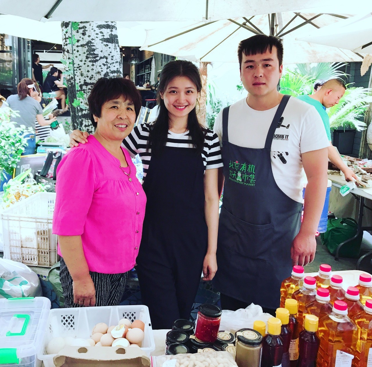 在北京有機(jī)農(nóng)夫市集幫陳子彧和陳媽媽王新英賣農(nóng)產(chǎn)品