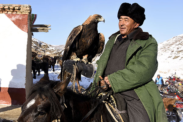 在距離塔城市300公里的托里縣多拉特鄉(xiāng)“冬窩子”哈拉包爾,阿克塞村村民騎馬趕來參加活動(12月3日攝)。