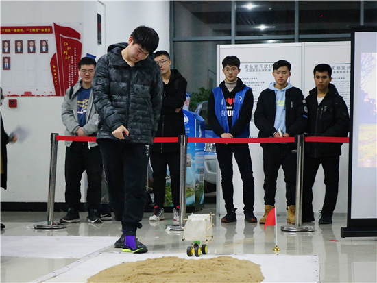 比賽一開始,成員先對(duì)試驗(yàn)場(chǎng)地進(jìn)行了數(shù)據(jù)分析,以設(shè)計(jì)出更符合試驗(yàn)場(chǎng)地需要的裝置,接著小組成員各司其職,分別負(fù)責(zé)出謀劃策、具體組裝、操作與調(diào)試。準(zhǔn)備很是周全,可是由于用力過猛,他們的第一個(gè)雞蛋還是“壯烈犧牲”了,在距離比賽結(jié)束的20分鐘里,他們決定利用所學(xué)知識(shí)改變裝置——采用多面體結(jié)構(gòu)裝置。他們的隊(duì)長,19機(jī)械專業(yè)李登解釋:“裝置每一個(gè)面為三角型結(jié)構(gòu),雞蛋則處于裝置的中央,這樣有兩個(gè)好處:一是落地時(shí),不論哪一面先著地,雞蛋都不會(huì)與地面有直接接觸,二是雞蛋在下落過程中處于懸空狀態(tài),當(dāng)裝置落地時(shí),撞擊力不會(huì)傳遞到雞蛋上,從而保證雞蛋無破損。”隊(duì)員們表示,無論是他們組還是其他組,雞蛋如有破碎,所有隊(duì)的人員都是很焦躁的,但失敗乃是成功之母,在冷靜、認(rèn)真分析后,他們最終順利地解決了難題。特別是隨后的遙控運(yùn)輸,他們是融入了所學(xué)的編程知識(shí)順利完成的,他們認(rèn)為,這也正是比賽的意義所在:在準(zhǔn)備的過程中會(huì)有各種意外,在比賽中意外也會(huì)隨時(shí)到來,但是始終考量的是他們的團(tuán)隊(duì)心態(tài)與挑戰(zhàn)問題的能力,和破解問題能力。