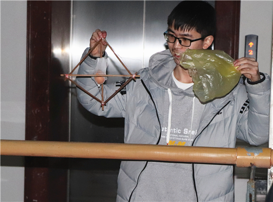 最終,“創(chuàng)意隊(duì)”“讓雞蛋安心飛”“恰恰香瓜子”三個(gè)隊(duì)伍分別獲得了一、二、三等獎(jiǎng)。比賽之精彩,評(píng)委孫雅萍老師充分肯定了同學(xué)們對(duì)已連續(xù)舉辦了九屆的“異想天開”大賽的熱衷程度,也道出了這一比賽的意義,她指出:“傳承重要,創(chuàng)新也重要”。學(xué)生們?cè)趯W(xué)習(xí)前輩經(jīng)驗(yàn)時(shí),也充分發(fā)揮主觀能動(dòng)性,無止境地開發(fā)自己的潛能,樹立成功、積極的心態(tài),方而創(chuàng)造出了新的奇跡。組織者兼評(píng)委之一的胡健老師也激動(dòng)地表示“雞蛋落地這件事本身很常見,但我們?nèi)怨膭?lì)大家異想天開,用新的思維方式去解決問題。值得欣慰的是,今年比賽中我見到了許多熟悉的面孔,去年參加過,今年再次報(bào)名的有很多,而且還有不少大一新面孔,同學(xué)們的積極性真的非常高!這就是大學(xué)生活該有的樣子!”(許諾 王瑩瑩 薛佳文)